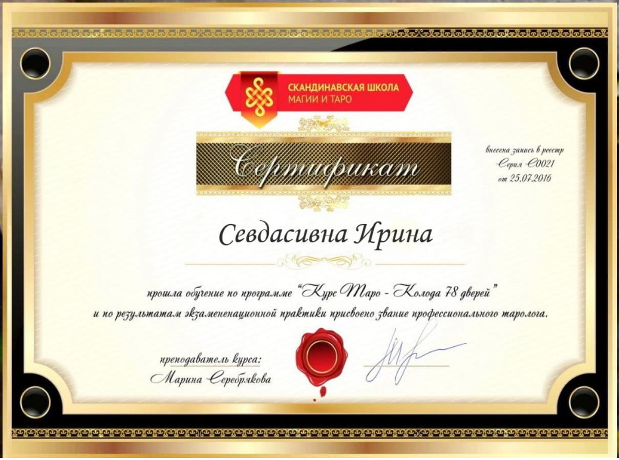 Приветствую, мои дорогие. Меня зовут Ирина. Являюсь опытным тарологом, потомственной гадалкой и ясновидящей.
